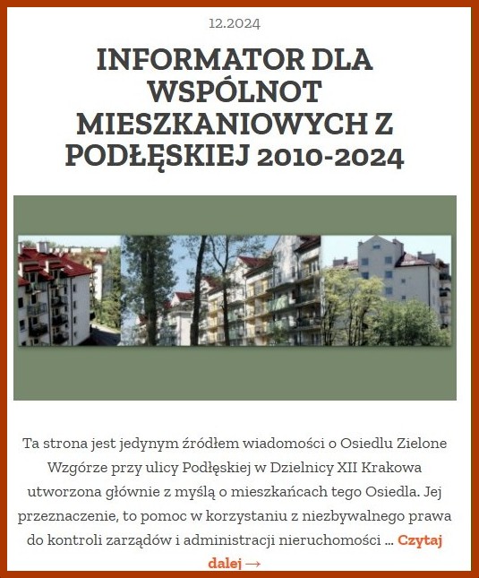 Informator dla Wspólnot Mieszkaniowych z Podłęskiej 2010-2024
